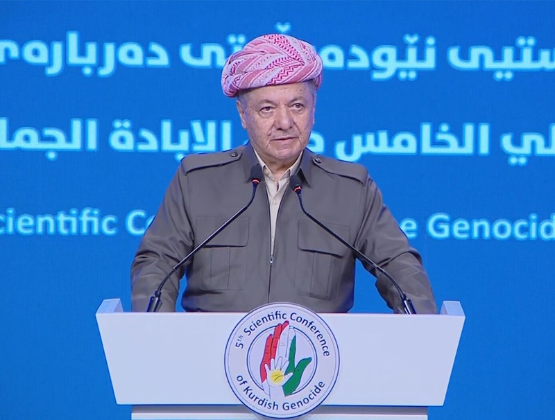 Dihok-KDP.info: îro 28ê Cotmehê, Bi amadebûna Serok Mesûd Barzanî,Konferansa Zanistî ya Navdewletî ya taybet bi Jenosîda Gelê Kurd li bajarê Dihokê dest pê kir. Di gotara xwe de, Serok Barzanî tekezî li ser pêwîstiya garantiyekê kir ku tawanên jenosîdê careke din dubare nebin û bang li Hikûmeta Iraqê kir ku qerebûya qurbaniyan bike.