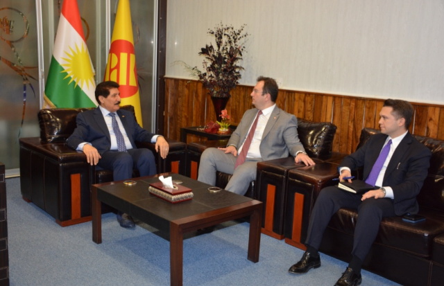 ھەولێر -KDP.info- ئەمڕۆ لە بارەگاى مەکتەبى سیاسى پارتى دیموکراتى کوردستان فازل میرانى بەرپرسى دەستەى کارگێڕیى مەکتەبى سیاسى پێشوازى لە (ئەرمان تۆپچو) کونسڵى گشتى تورکیا لە هەولێر کرد.