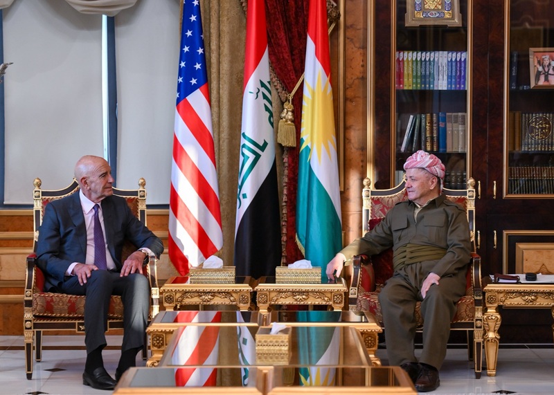 هەولێر-KDP.info- ئێوارەی ئەمڕۆ دووشەممە 2026/2/23 بەڕێز نێچیرڤان بارزانى، سەرۆكى هەرێمى كوردستان، پێشوازیى لە بەڕێز تۆم باراك، نوێنەرى سەرۆك ترامپ بۆ كاروبارى سووریا و باڵیۆزى ئەمه‌ریكا لە توركیا و شاندێكى یاوەرى كرد.
