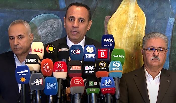 ھەولێر-KDP.info- دەستەی ناوچە کوردستانییەکانی دەرەوەی ئیدارەی هەرێم لەگەڵ نوێنەری سەرجەم حزب و لایەنە سیاسییە کوردستانییەکانی سنووری پارێزگای دیالە و قەزای خانەقین کۆبووەوە، دوای کۆبوونەوەکە، لە کۆنگرەیەکی رۆژنامەوانیدا هەڵوێستی فەرمیی خۆیان بەرامبەر بە گۆڕانکارییە ئیدارییەکانی ناوچەکە راگەیاند.