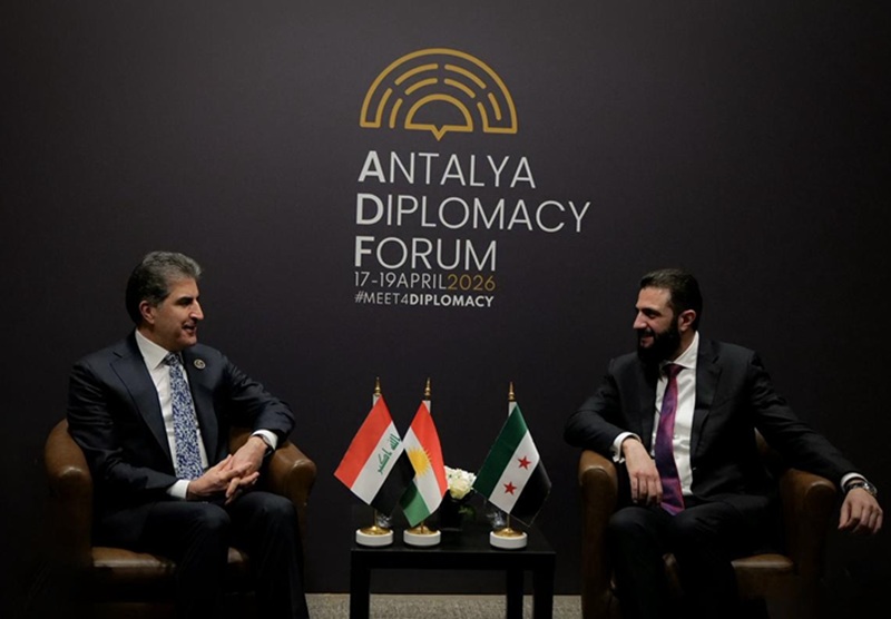 ئانتالیا-KDP.info- نیوهڕۆى ئەمڕۆ هەینی 2026/4/17 بەڕێز نێچیرڤان بارزانی، سەرۆکی هەرێمی کوردستان، لە میانی بەشداریکردنی لە کۆڕبەندی دیپلۆماسیی ئانتالیادا، لەگەڵ بەڕێز ئەحمەد ئەلشەرع، سەرۆکی کۆماری عەرەبیی سووریا کۆبووەوە.