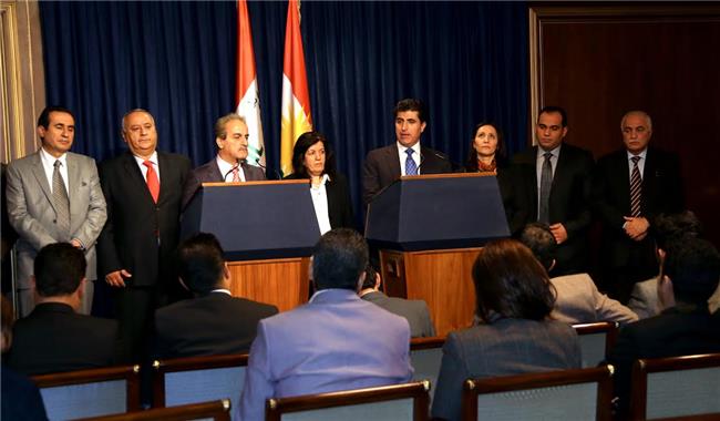 أربيل - KDP.info/ أجتمع نيجيرفان بارزاني الملكلف من قبل الحزب الديمقراطي الكوردستاني بتشكيل الكابينة الثامنة لحكومة أقليم كوردستان، والوفد المرافق له، مع الأطراف المسيحية لأقليم كوردستان، وهي أبناء النهرين، والتجمع الكلداني السرياني الآشوري ومجلس الشعب الكلداني السرياني الآشوري، والحزب الوطني الآشوري، والحزب الديمقراطي بيت نهرين، والمجلس القومي الكلداني، وبعد الأجتماع بهذه الأطراف لسياسية، تم عقد مؤتمرا صحفيا مشتركا لك من نيجيرفان بارزاني وروميو هكاري السكرتير العام للحزب الديمقراطي بيت نهرين ممثلا عن الأطراف المسيحية.