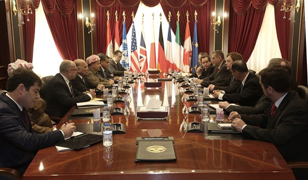 هولير-KDP.info- استقبل السيد مسعود بارزاني رئيس اقليم كوردستان اليوم الاثنين 7/3/2016 وفدا مشتركا من الامم المتحدة والاتحاد الاوروبي ودول مجموعة السبعة والبنك الدولي، حيث تالف من الممثل الخاص للامين العام للامم المتحدة في العراق يان كوبيش وسفير الولايات المتحدة الاميركية في العراق جون ستيوارت والسفير البريطاني في العراق فرانك بيكر والسفير الياباني في العراق سوميو ايواي ورئيس وفد الاتحاد الاوروبي في العراق باتريك سيمونت ومدير شؤون السفارة الكندية في العراق ونائب مدير السفارة الالمانية في العراق ميلان سيماندل ونائب السفير الايطالي في العراق باتريك مورا والقنصل العام الفرنسي في اربيل الان كيبخات ومدير البنك الدولي الخاص للعراق روبيرت جود.